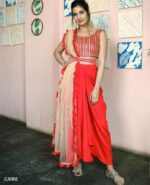 Unleash your inner diva with the Scarlet Glamour Draped Set, crafted in lightweight crepe. This stunning ensemble includes a beautifully detailed blouse, a stylish belt, a delicate net dupatta, and a modern draped skirt that adds a contemporary twist. The vibrant red hue, complemented by intricate designs, makes this outfit a head-turner, perfect for festive events or special gatherings. Embrace a blend of tradition and elegance that brings confidence to every step. 🌺✨💃